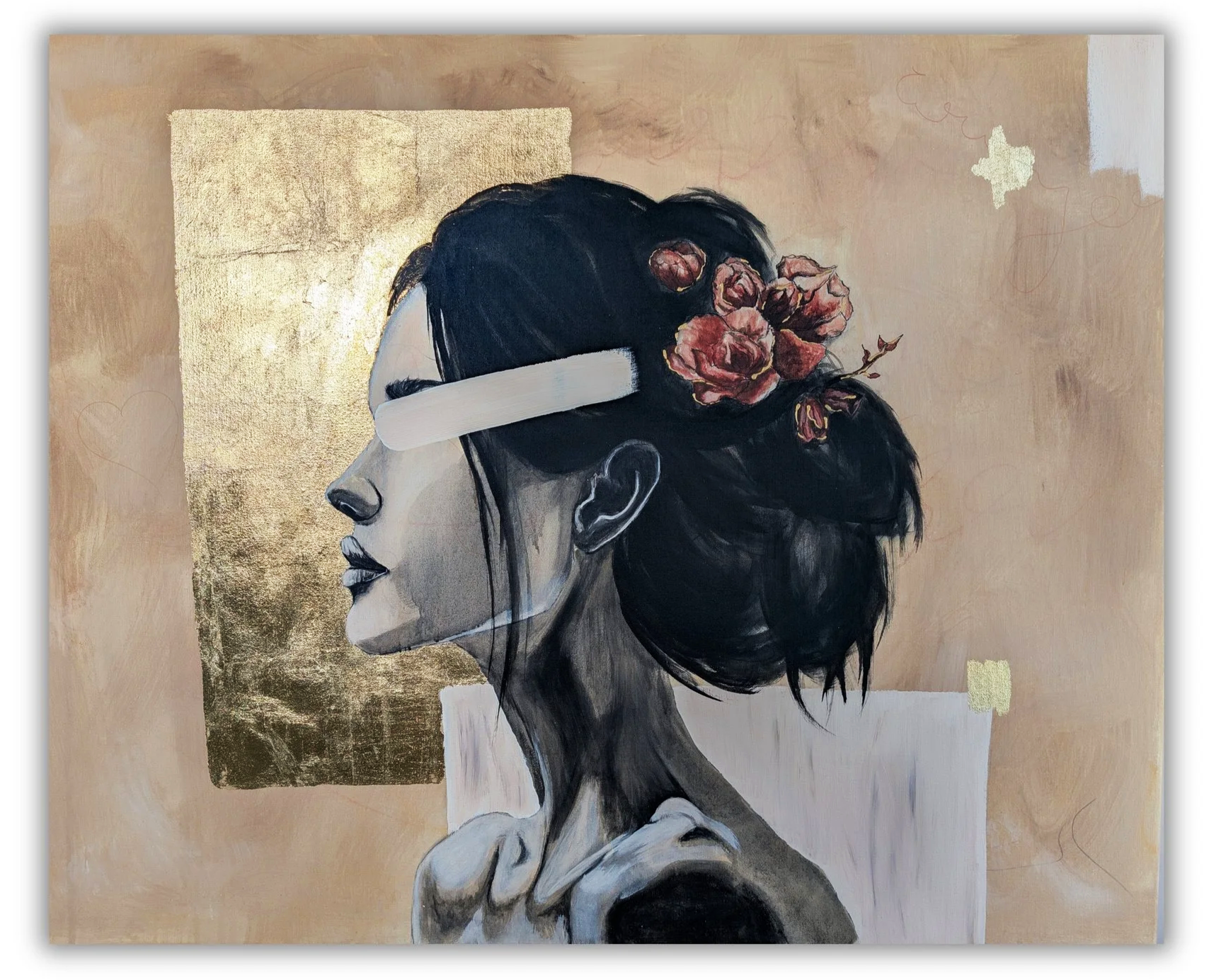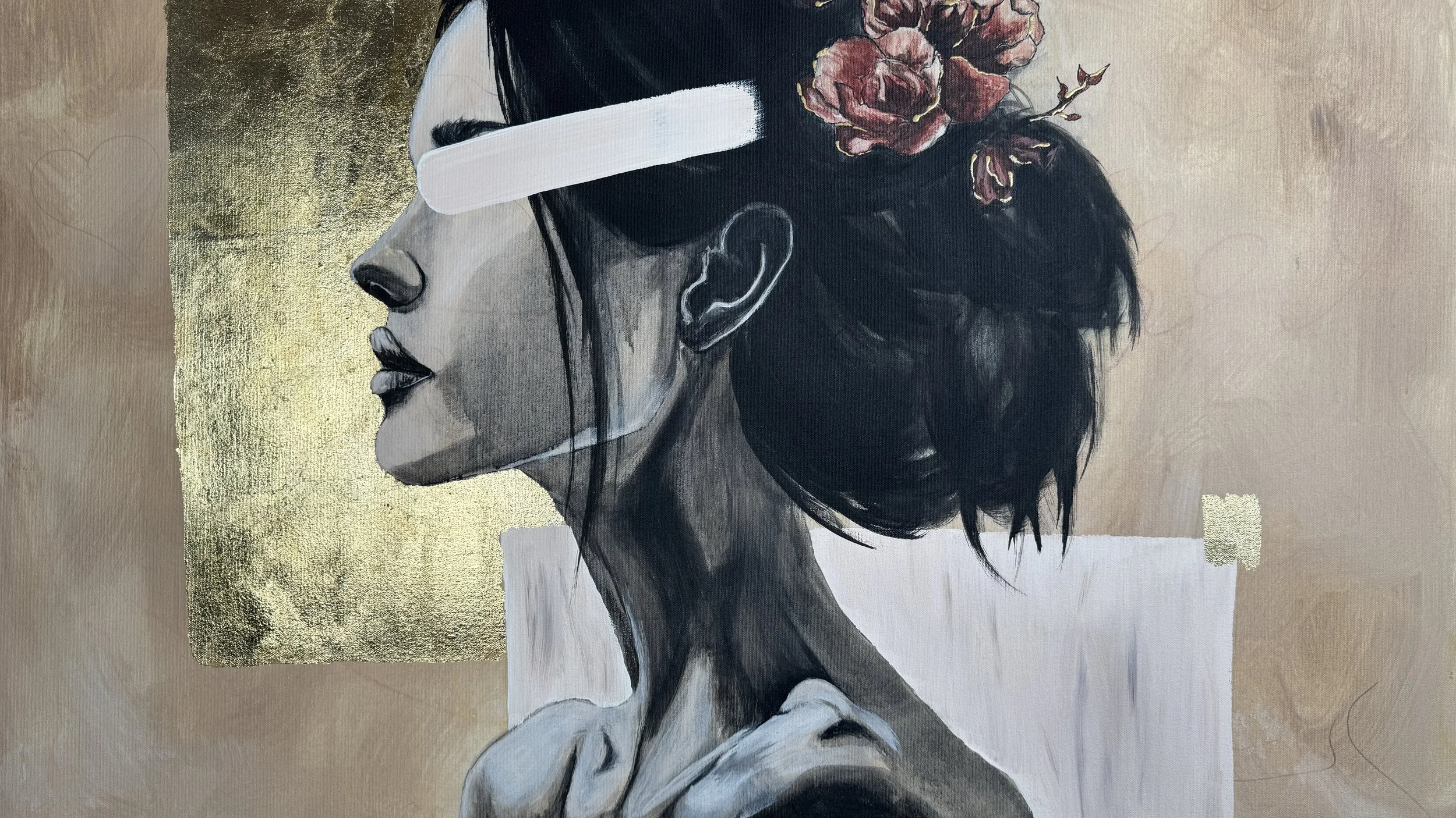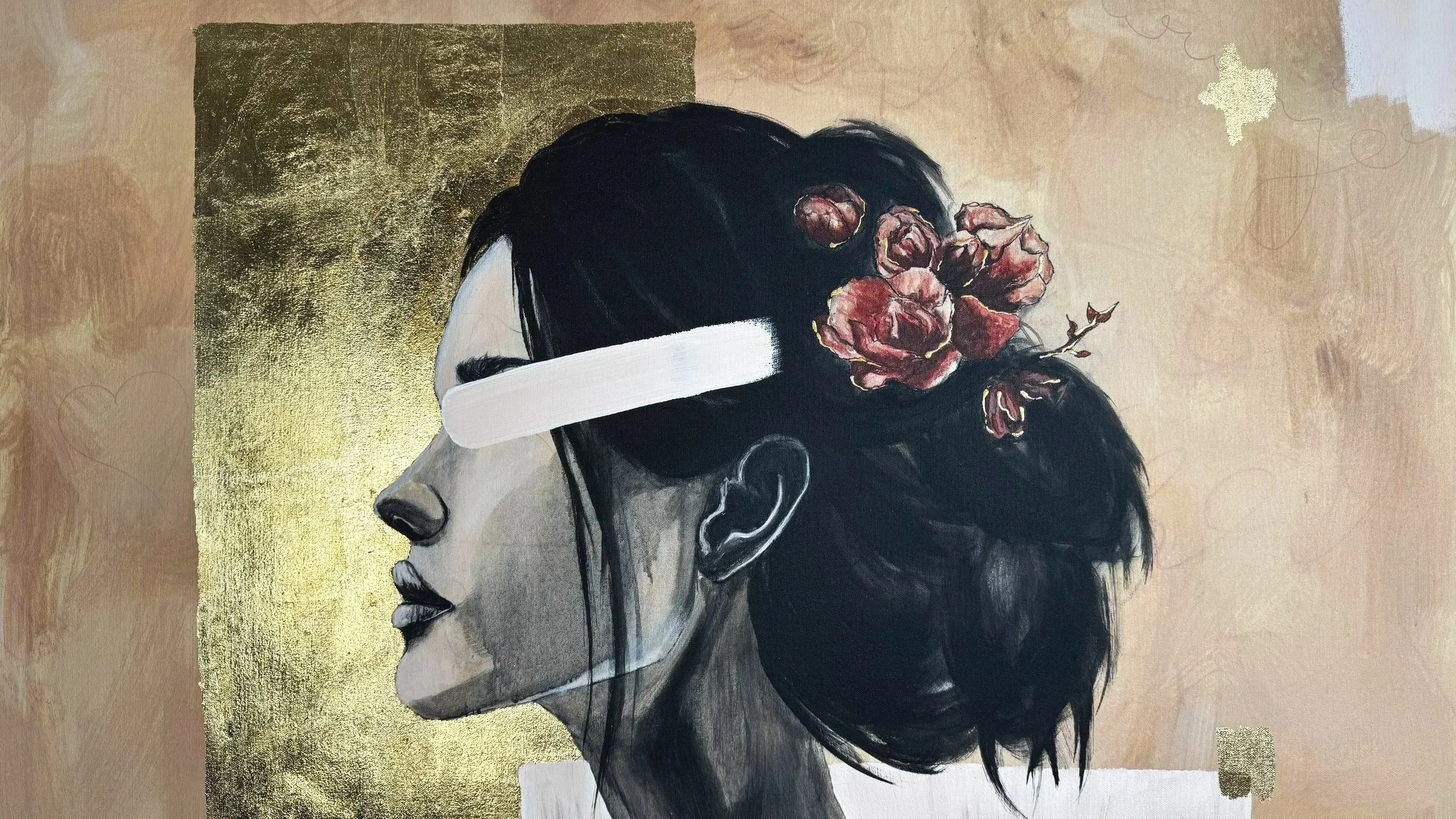 80 × 100 cm – Acrylfarben, Kohle, Blattgold – 890 € (inkl. Versand)